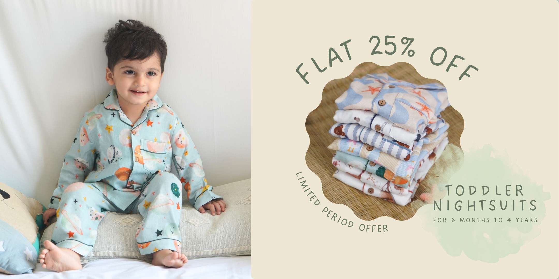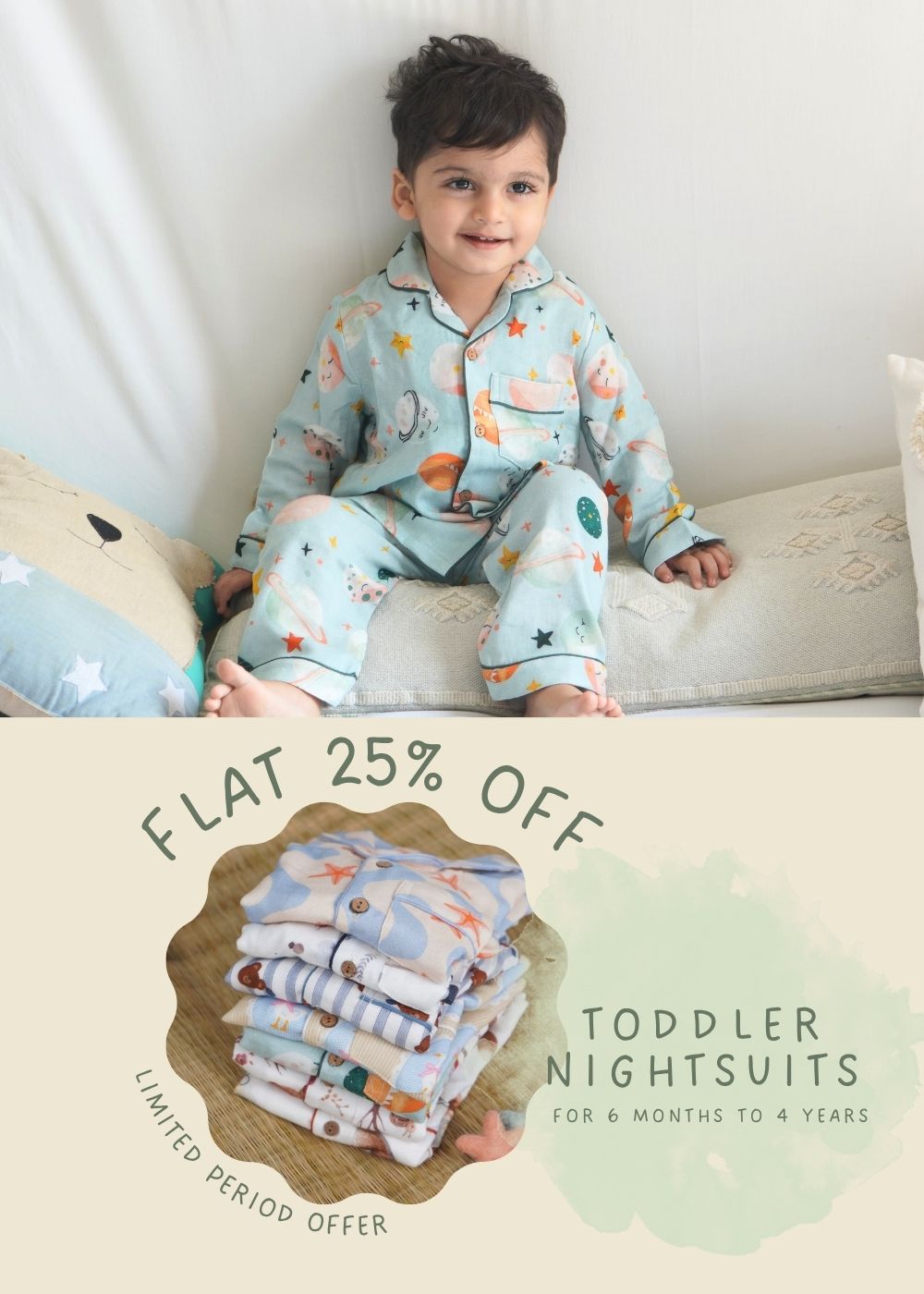 A Kids Nightsuit is one of those essentials you quickly realise you need more than one of. Our nightsuits are part of our best baby clothing brand range, offering hug-like warmth without heaviness.