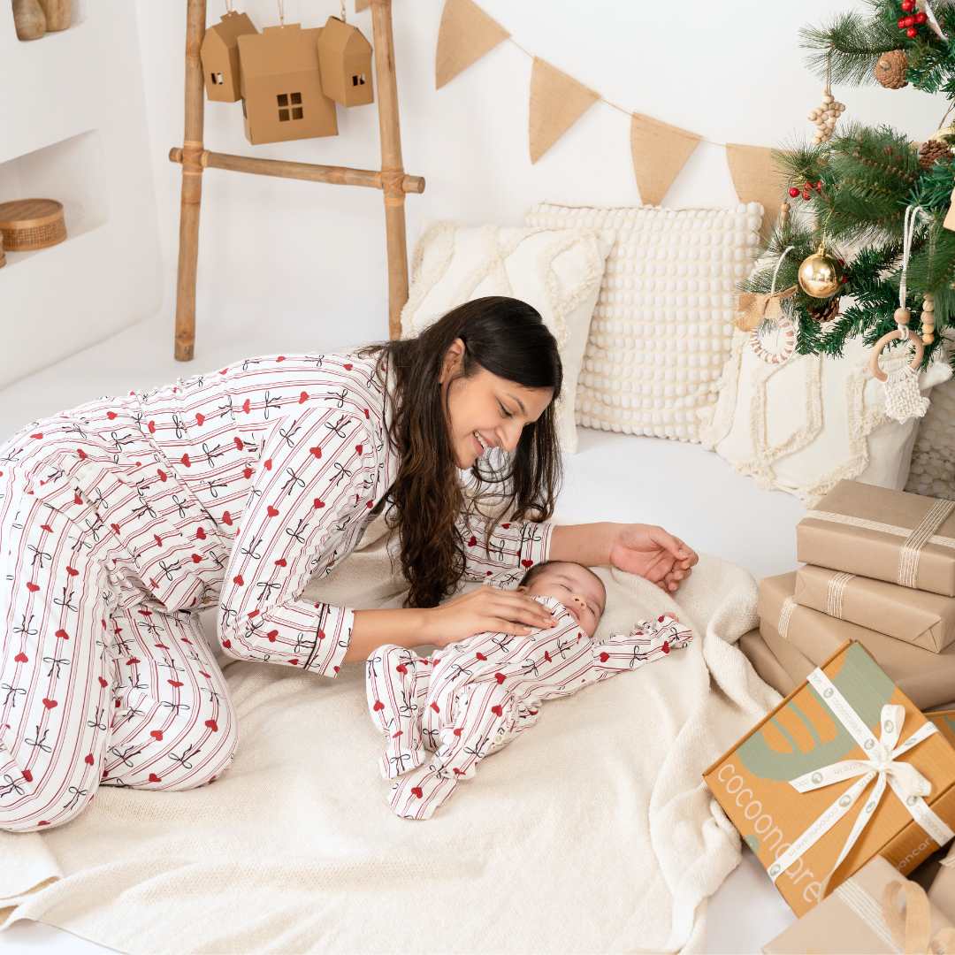 One of the greatest joys of parenthood is dressing your child to the nines. But when you wear matching outfits, the magic truly doubles. Childhood memories are beautifully stitched with threads of love, laughter, and adorable matching pyjama moments. This Father's Day, let us celebrate the extraordinary bond between dads and their little ones with our thoughtfully crafted father-son matching outfits that are tailor-made for giggles, snuggles, and picture-perfect moments. Our Father's Day special matching sets are perfect for bedtime storytellers and tickle monsters. No matter whether we are looking for matching PJs for a lazy Sunday or some father and baby matching sleepwear sets for bedtime cuddles, these sets from Cocoon Care are truly made for memories. Our bamboo knit nightsuit in Heart and Soul is sure to feel like a warm hug stitched in soft bamboo: Our matching PJ sets for father and baby are thoughtfully designed in heart print that speaks the language of love. This is definitely a good choice of stylish father and baby matching nightwear for a Father's Day gift! From dad-sized pyjamas to cosy baby night suit sets, every design is so thoughtful and comfortable that it is bound to guarantee the sleep of your dreams. “Our goal is not just to make clothes and accessories, but to give parents a way to wrap their babies in love and care even when they are too little to say it back! We hope you and your little ones enjoy our twinning sets that are truly little love letters stitched in fabric.” With Love, Team Cocoon Care. At Cocoon Care, these matching sets were born from the heartfelt requests of parents who wanted a special way to celebrate their bond with their little ones. We listened and created these twinning outfits to bring families closer, making those everyday moments a bit more magical and memorable. Our father and son matching dresses are more than just matching, they are meaningful! When you choose Cocoon Care, you are opting for these things: Our family matching outfits are gorgeous, thoughtfully designed, and perfect for cosy nights and dreamy days. Our signature fabric, bamboo cotton, is 100% organic and OEKO-Tex certified. Bamboo cotton is three times softer and cooler than cotton, which makes it perfect for your baby's soft skin, safe for sensitive skin. Bamboo fabric is naturally hypoallergenic and an excellent choice for making organic baby clothes. From father-daughter matching outfits in India to unisex baby clothes and more, we've got something for everyone. Shop now to create your special matching moments. Besides best matching PJ sets for father and baby, you can also browse through our collection of baby vests, burp cloths, sleep pods, etc. Fatherhood begins in the heart, not in the hospital room. Our father and baby matching outfits are a beautiful way for dads to start twinning early. You can surprise a father-to-be with a cosy matching PJ set so that he can wear this new role with utmost pride and joy. Nothing defines love better than twinning outfits. No matter if you're lounging at home or capturing fun-filled memories, our dad-and-son matching pyjamas make the perfect choice. Our baby boy and dad matching clothes are designed in such a way that any combination can wear them; daddy daughter, dad son, or even use them as mom, dad and baby matching outfits. Our father-son and father-daughter matching sets are available from newborn up to toddler sizes for babies, and S to XXXL for dads. You can use our size chart on every product page for easy reference. While our matching sets are designed as nightwear, many parents use them for cosy weekends, lounging and casual family hangouts. They are stylish and soft enough for all-day wear. Popular searches Sleep Essentials | Baby Headbands | Baby Sleepsuits | Swaddle Cloth | Washcloth | Sleep Pod | Baby Cloth Nappies | Baby Night Suit | Romper Dress