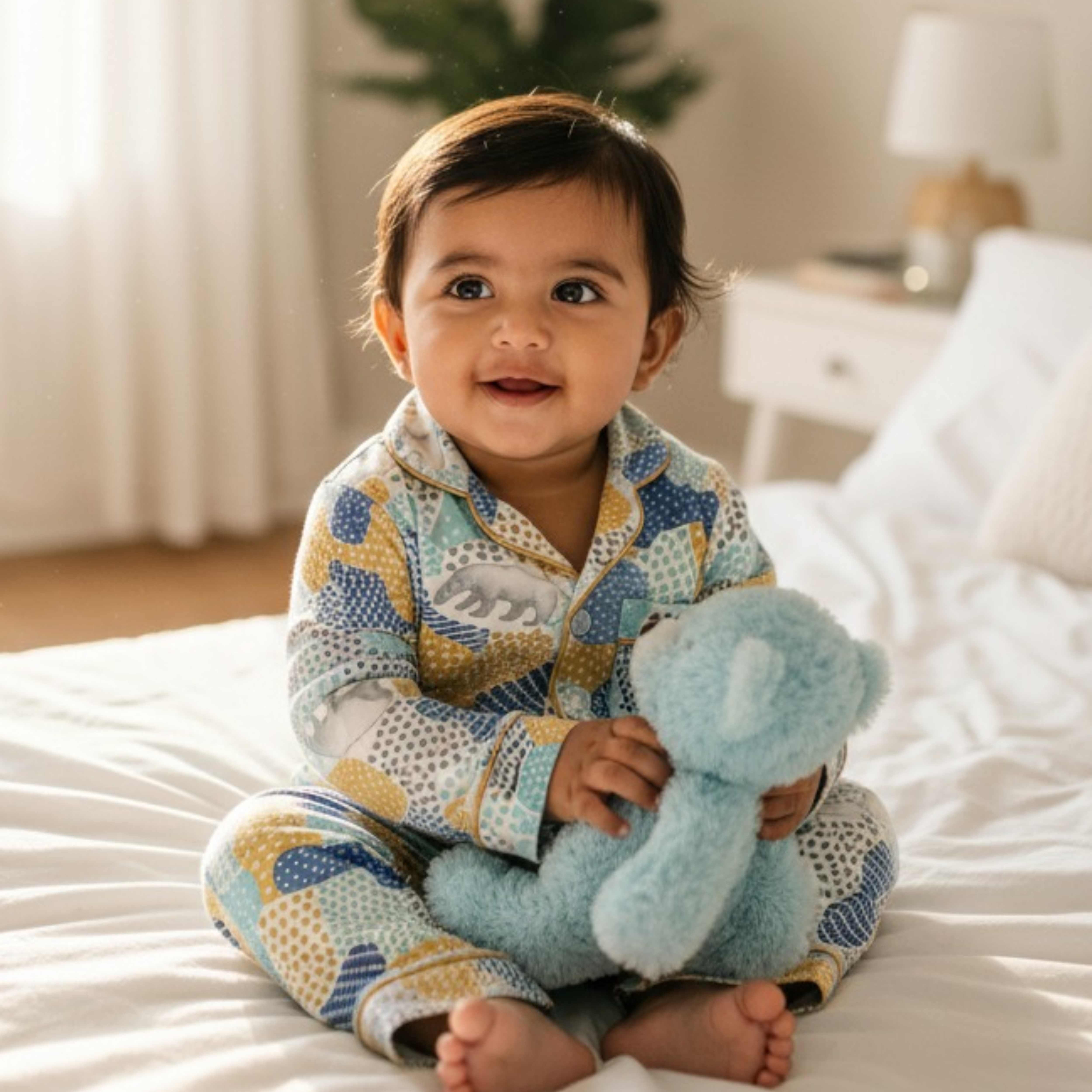 That is exactly why our bamboo printed night suit for kids feels like a cloud against your child's sensitive skin and looks absolutely dreamy.