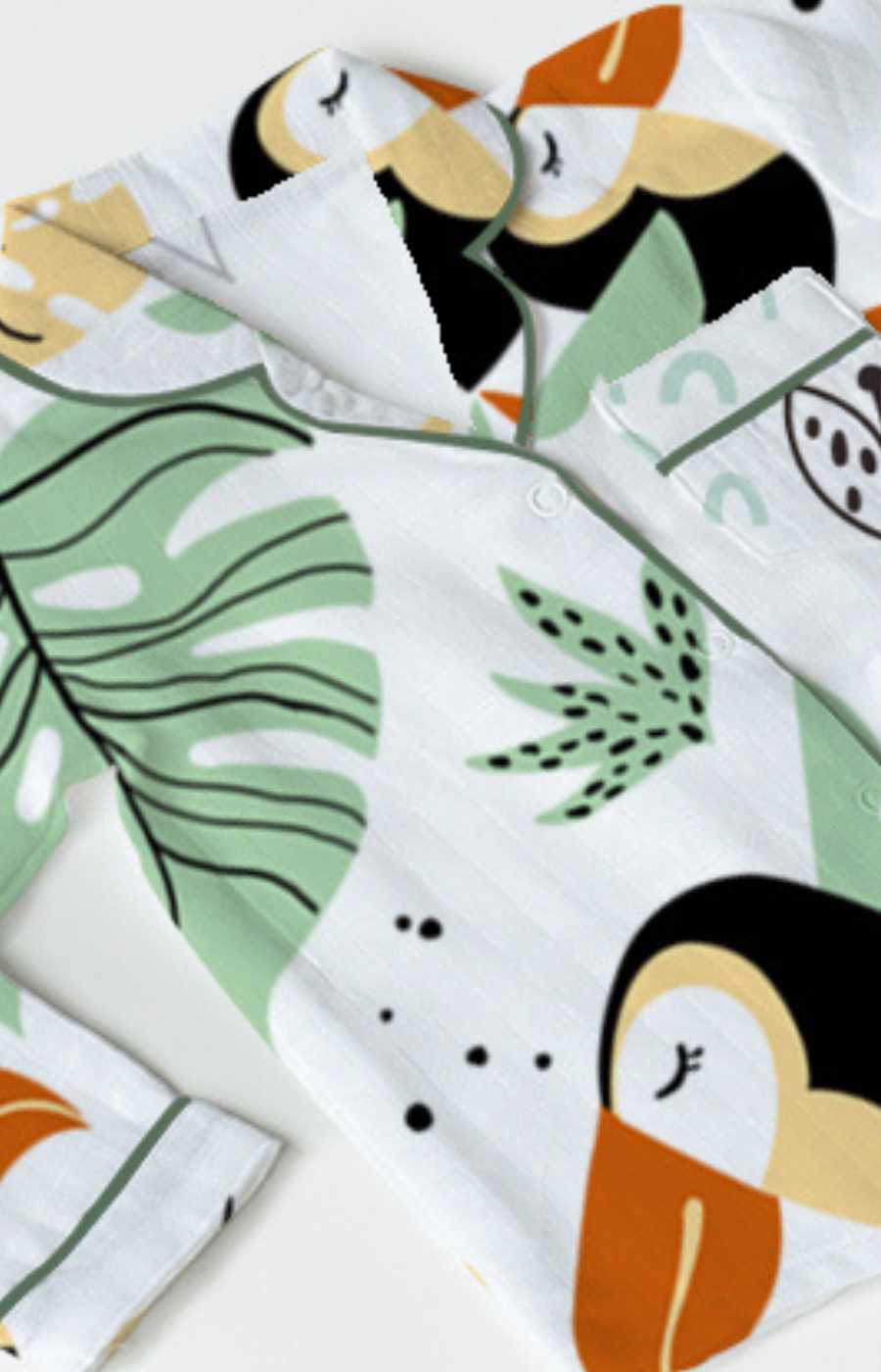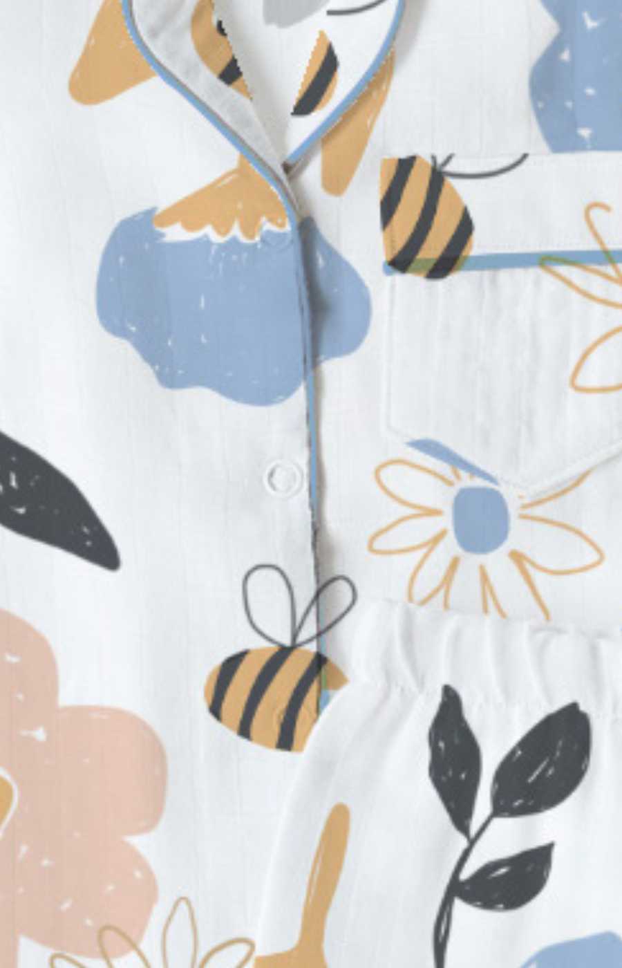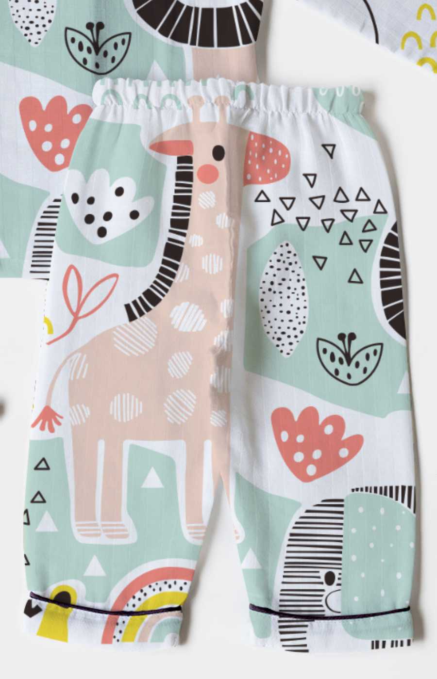 CocoonCare’s bamboo muslin nightwear for kids is a perfect addition to the newborn baby collection. They are designed to provide safe and cosy nights for your little ones. Made from the finest bamboo muslin fabric, they are non-irritant and hypoallergenic. Our bamboo night suit sets feature snap buttons for easy changing and an elastic waist design that is very soft on little tummies, leaving no marks. These muslin infant night suits are also diaper-friendly and make nighttime diaper changes much easier. With cute collars, little pockets and adorable prints this muslin night dress for kids gives them a cute bedtime look and ensures peaceful sleep at night.