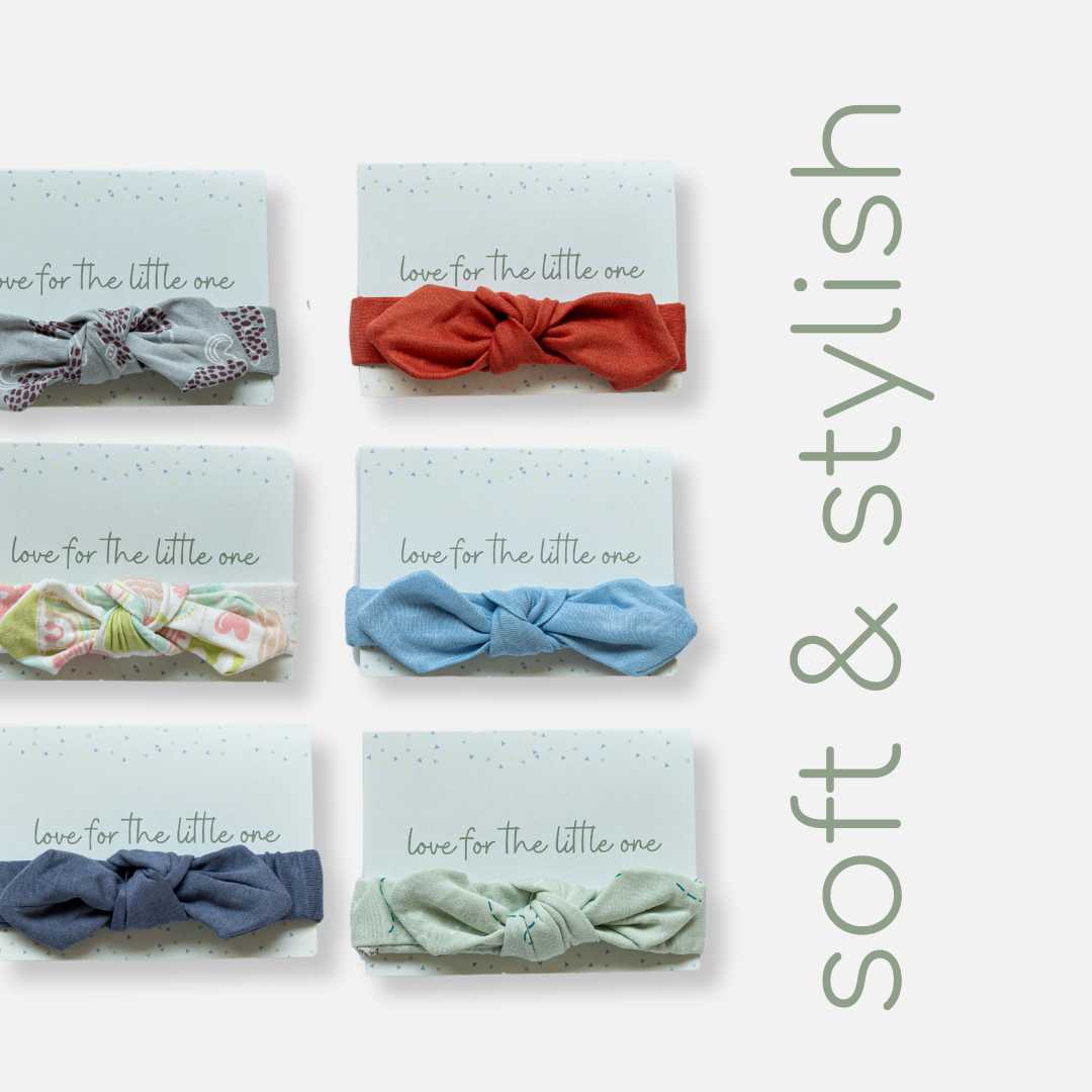 The headband is a tie-up style, so it can be adjusted as your baby grows. It’s suitable from newborn up to 12 months or more, depending on how you tie it for the right fit.